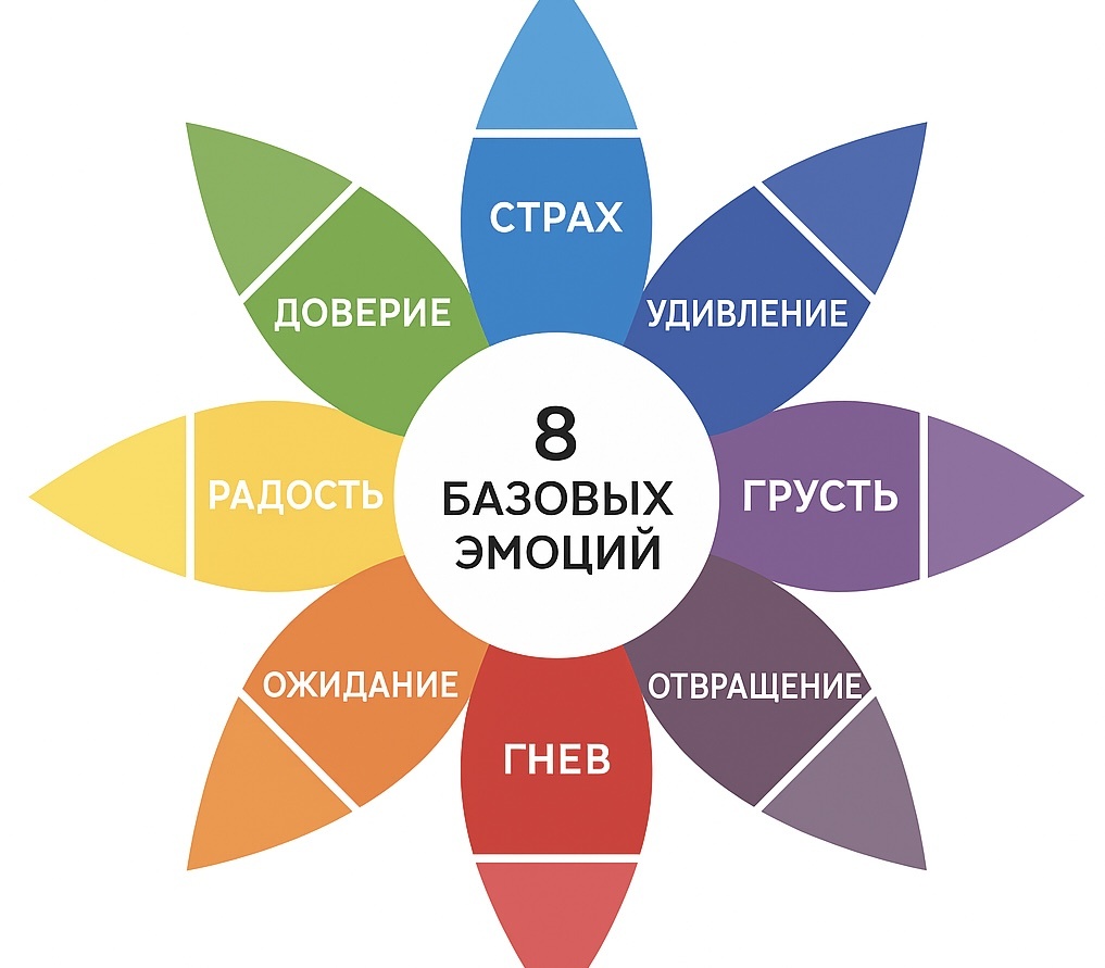 Эти восемь эмоций словно элементы управления внутри нас. Каждая играет свою роль: предупредить о риске, сблизить или наполнить энергией. Осознание своих эмоций помогает контролировать реакции и углубляет понимание окружающих.
