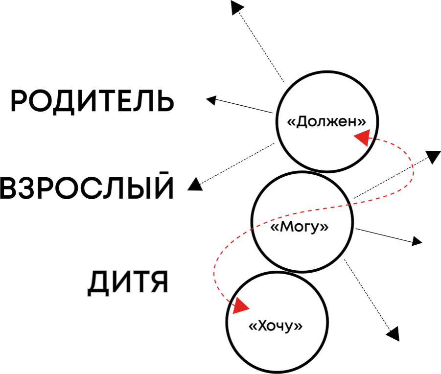 - Взрослый: ориентируется на реальные обстоятельства и способен адаптировать правила, исходя из ситуации, проявляя здоровую критичность и контакт с действительностью.