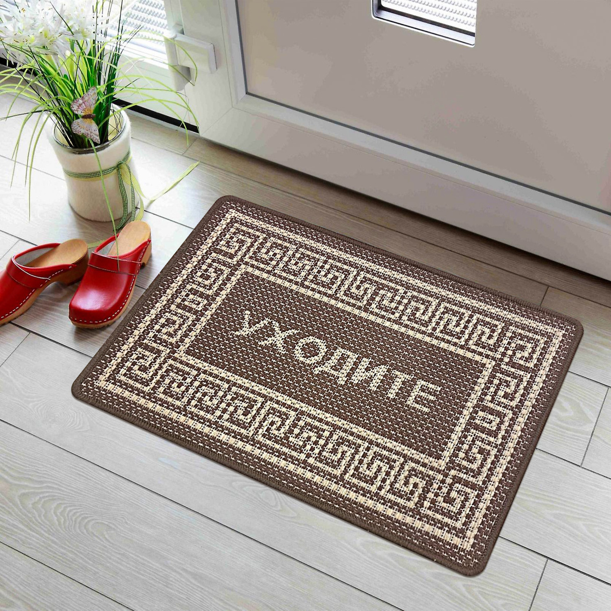Однако есть одна небольшая, но весьма досадная проблема. Перед дверью соседей размещен толстый коврик на резиновой основе с ворсовым верхом. Когда он лежит ровно посередине двери, открыть свою — невозможно. Дверь упирается в угол коврика, и каждое утро встаёт вопрос: как выйти из квартиры. Выходится только просунуть ногу в щель, подвинуть коврик к стене, а затем уже выдвинуться на улицу. И самой главной проблемой является то, что коврик довольно тяжелый и прилипает к полу. Вечером же соседи, возвращаясь домой, ставят его на место, хорошо знакомое им. Обычно решают эту утреннюю проблему мужчины.