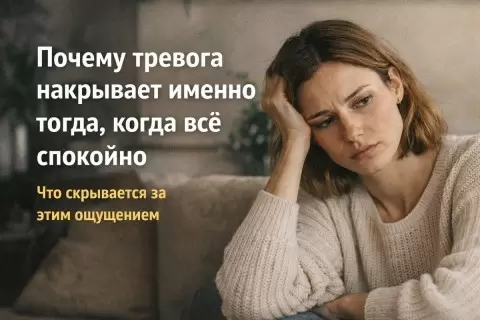 Спокойствие может восприниматься как угрожающее для тех, кто в прошлом испытывал нестабильность. У таких людей может сложиться установка: «Если сейчас тихо, значит, скоро что-то произойдет». Это результат гипервигилантности, которая формируется как защитный механизм. Ослабление контроля, когда работа и планирование перестают быть первоочередными задачами, также приводит к тому, что тревога появляется на поверхности. Это не является признаком слабости, а представляет собой процесс адаптации к новым условиям.