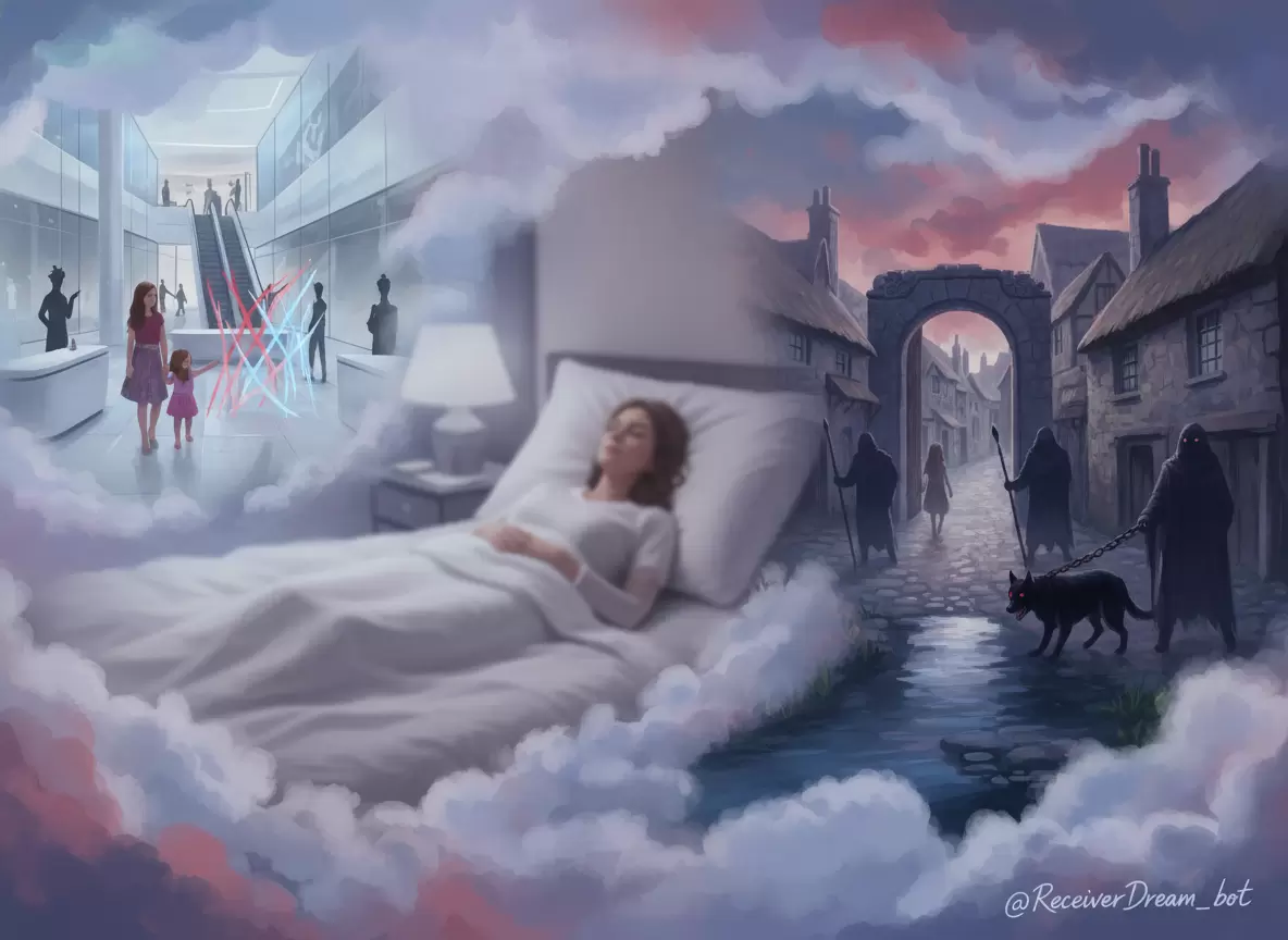 Сюжет сна: Наталия и её внучка, в возрасте около 7-9 лет (хотя на самом деле ей уже 17), оказались в современном торговом центре. Однако, когда они подошли к продавцу, женщина сообщила, что карта оплаты заблокирована. Встревоженные ситуацией, героини покинули центр и оказались на тихой деревенской улице с зелёным газоном, приведя их к реке, где разворачивалась зловещая сцена: трое мужчин жестоко избивали четвёртого, а один из них держал черную собаку. В ужасе Наталия решила вернуться назад вместе с внучкой.